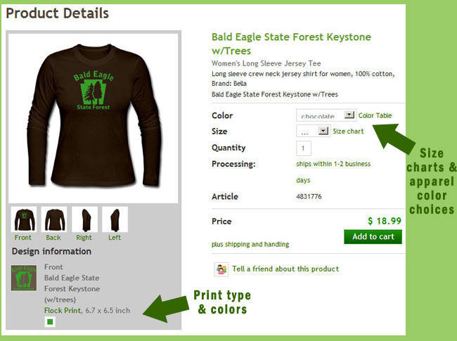 product detail pages you'll find a "size